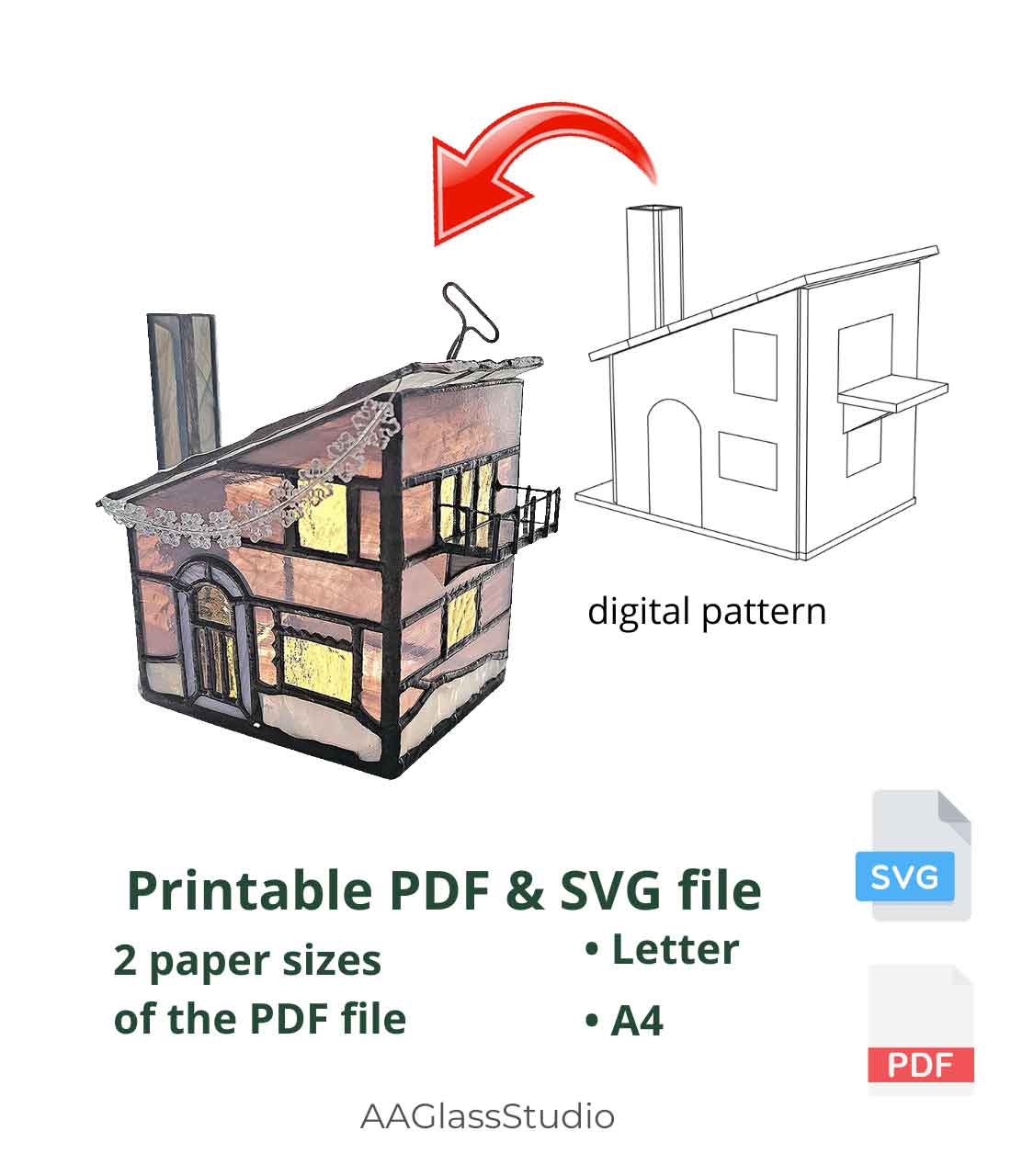 This charming lavender stain glass house comes with a commercial license, giving you the freedom to create and sell your finished pieces. Spread the festive joy by sharing your unique creations, or use the patterns to expand your crafting business.