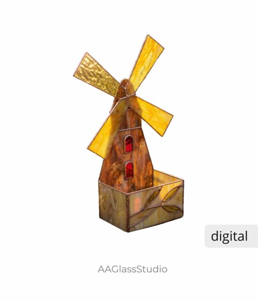 Golden Harvest Stained Glass Box Pattern – Charming Windmill Design