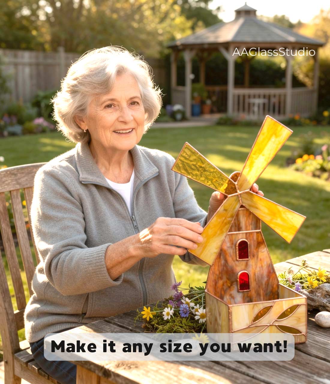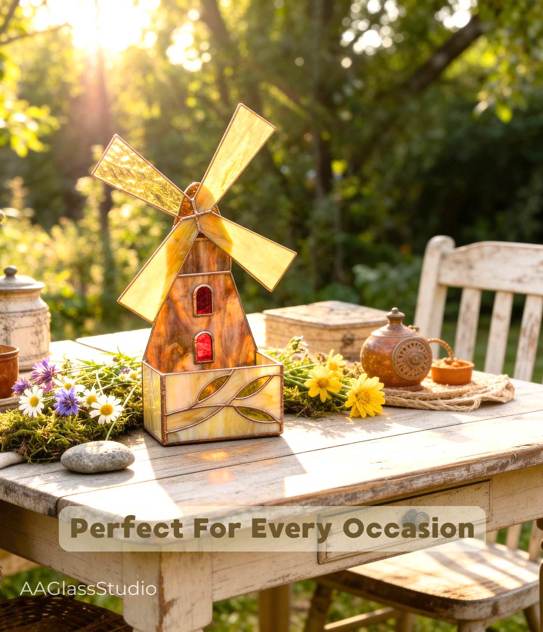 The Golden Harvest Windmill pairs naturally with other nature-inspired and 3D stained