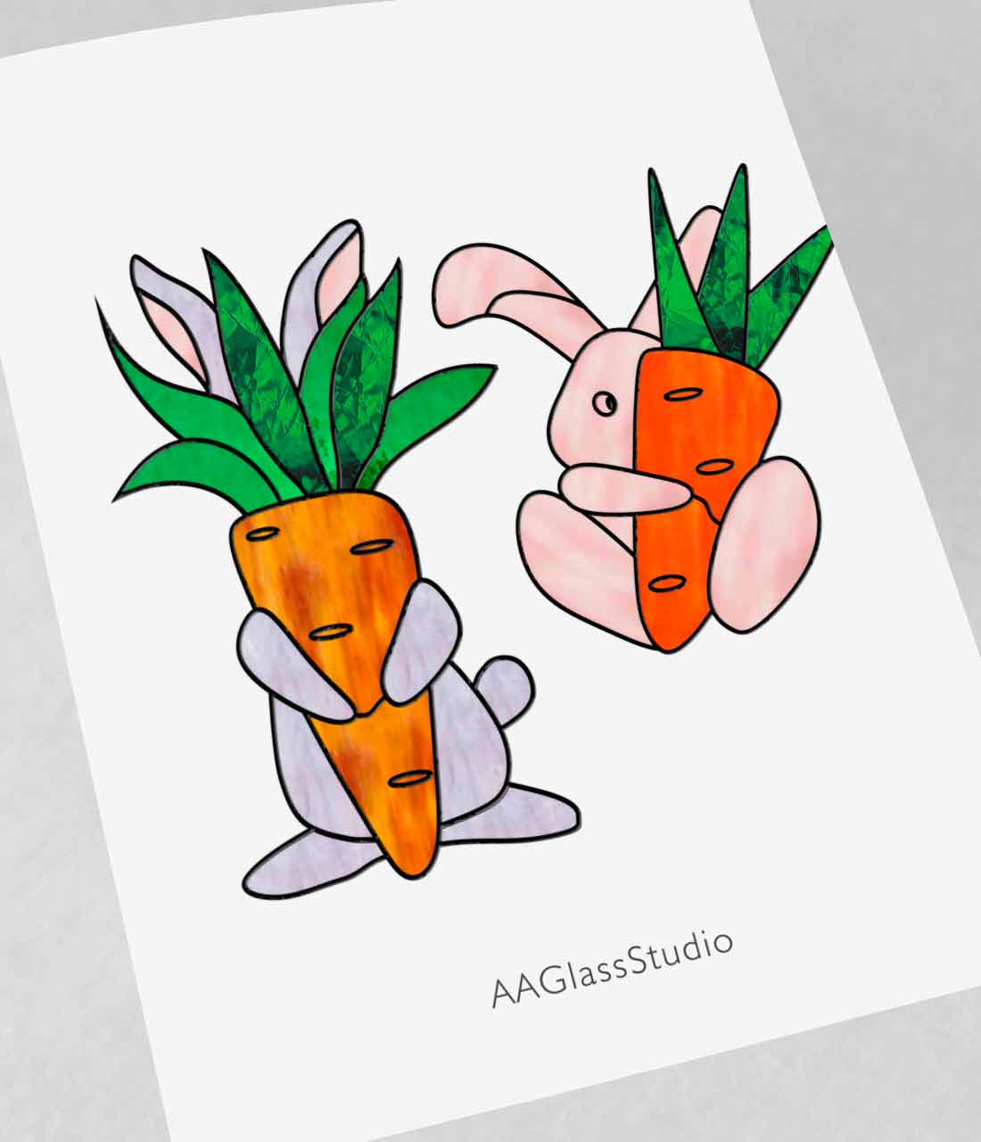 Rabbit Carrot Stained Glass Window Decor For Easter Gift: A Perfect Digital Craft