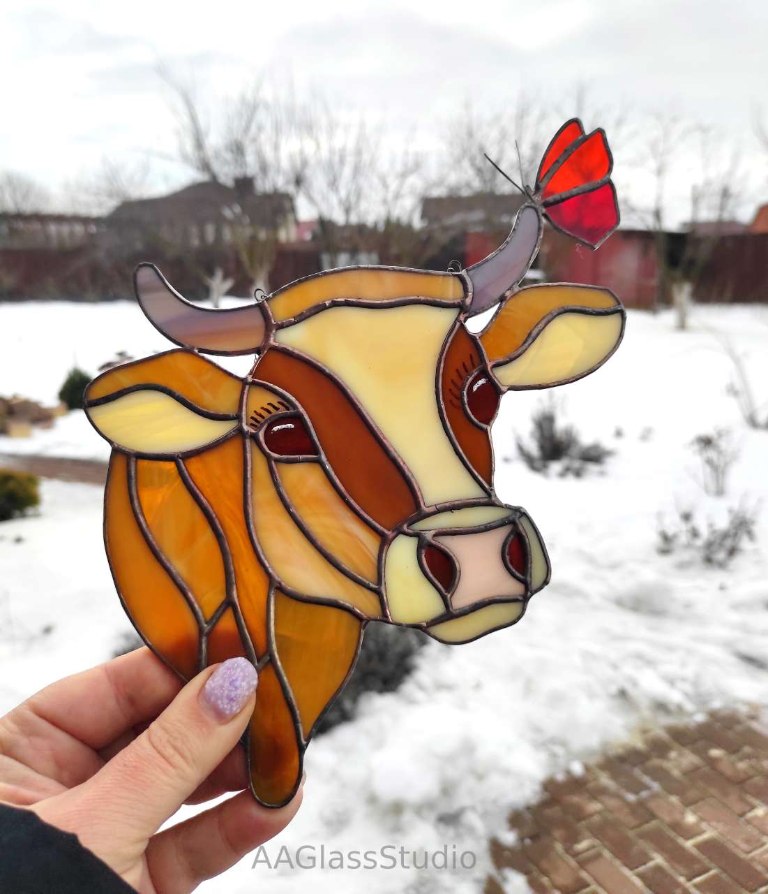 You can also sell this stained glass cow easily, as it is a popular and attractive item that many people will love. It is a great choice for anyone who likes farm animals, country style, or just cute cows. You can also give it as a gift to your friends or family who appreciate handmade crafts and unique art.