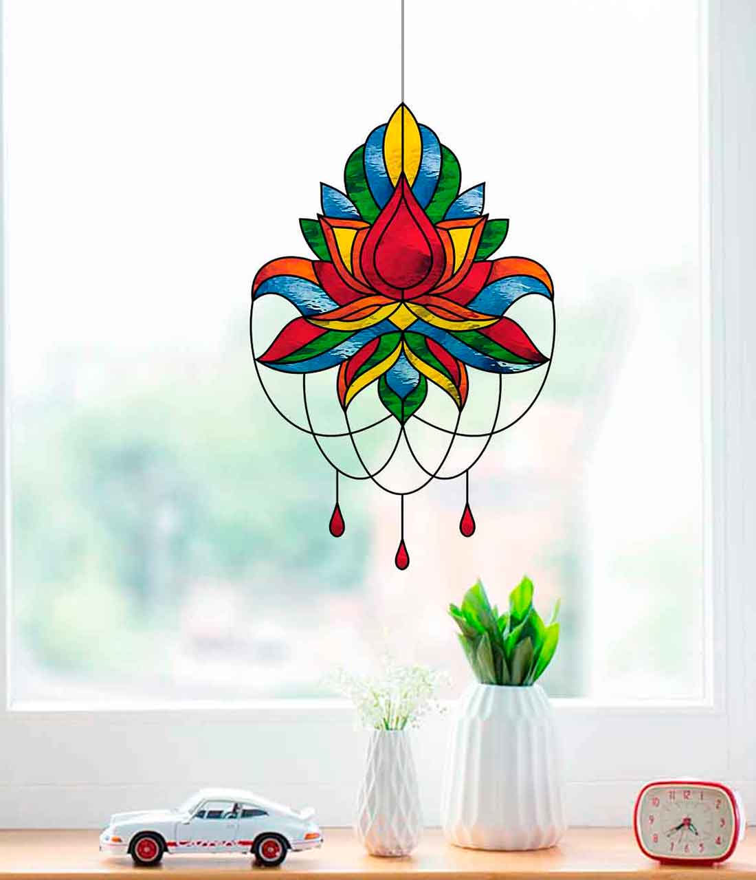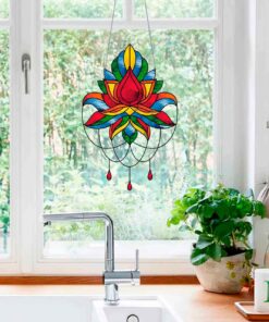 Indian Lotus Stained Glass Pattern: Home Decor