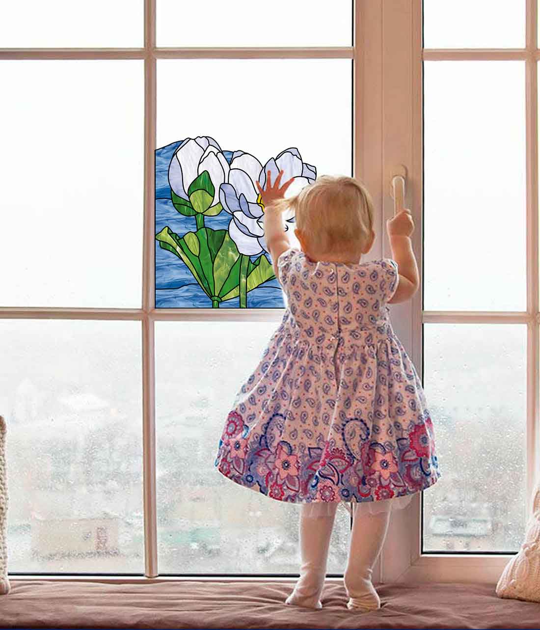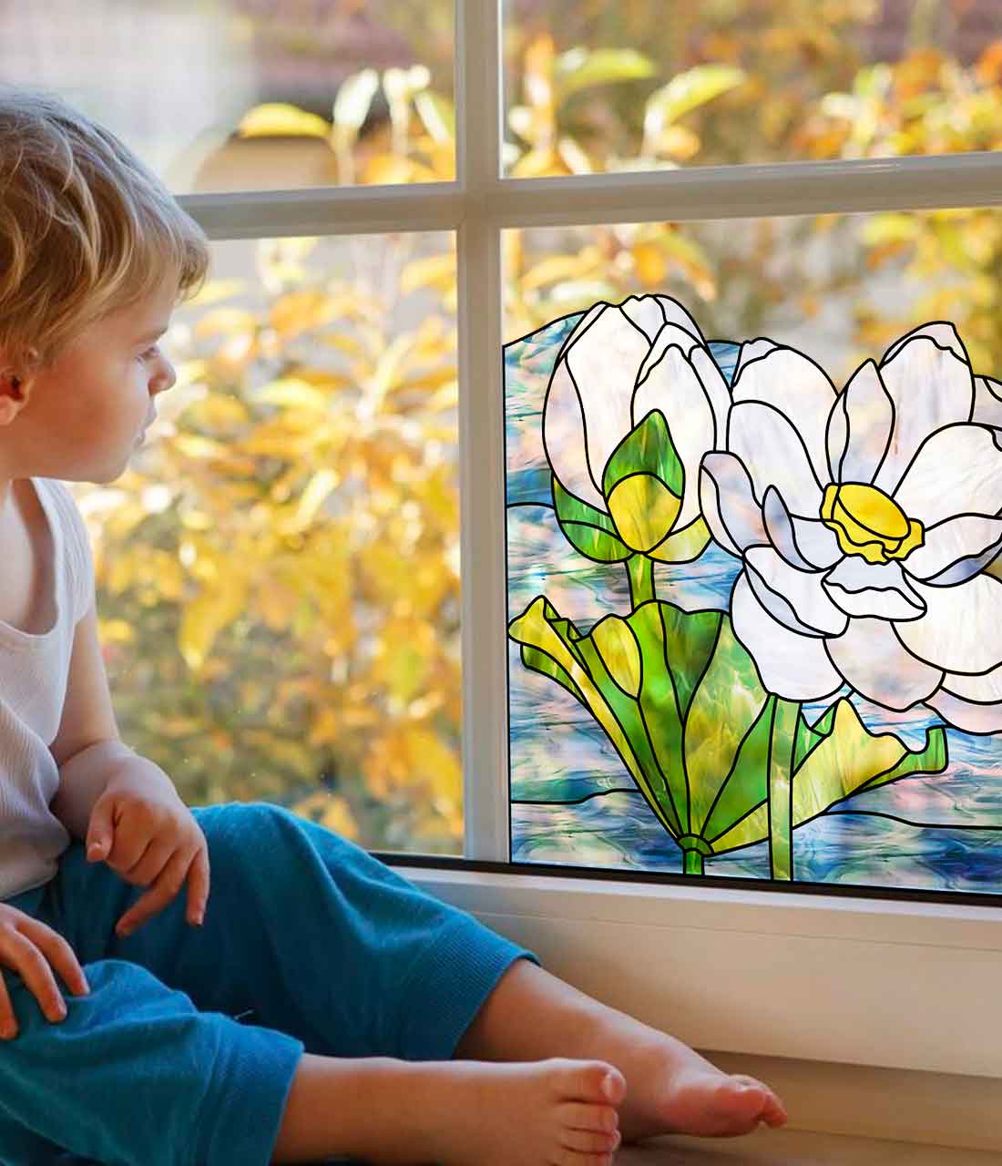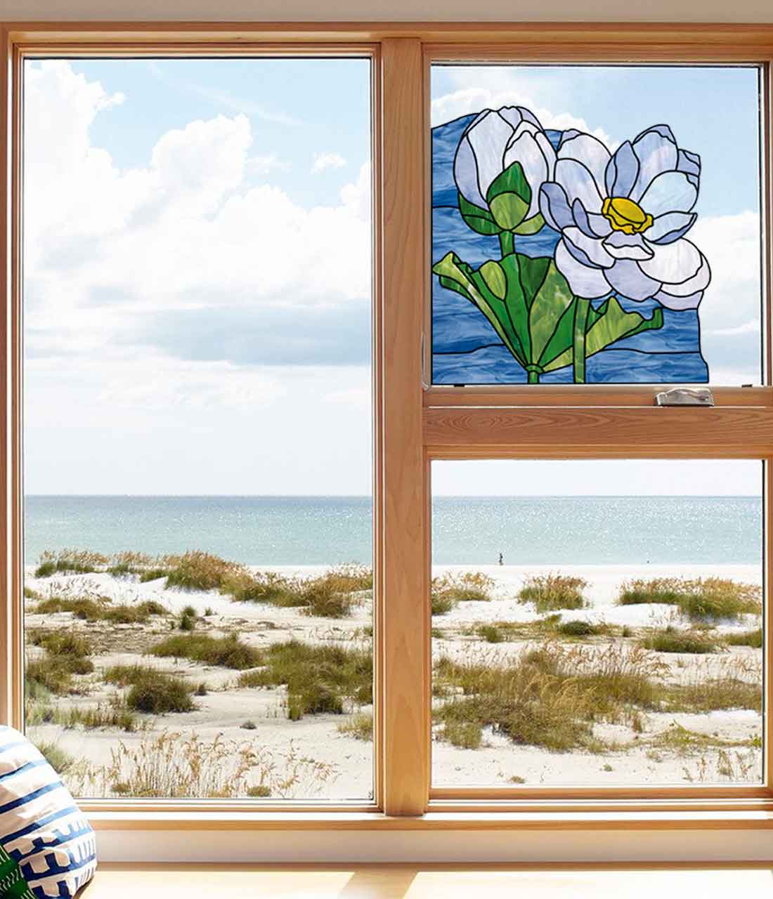 Floral Lotus Stained Glass Pattern Corner Design - window decor