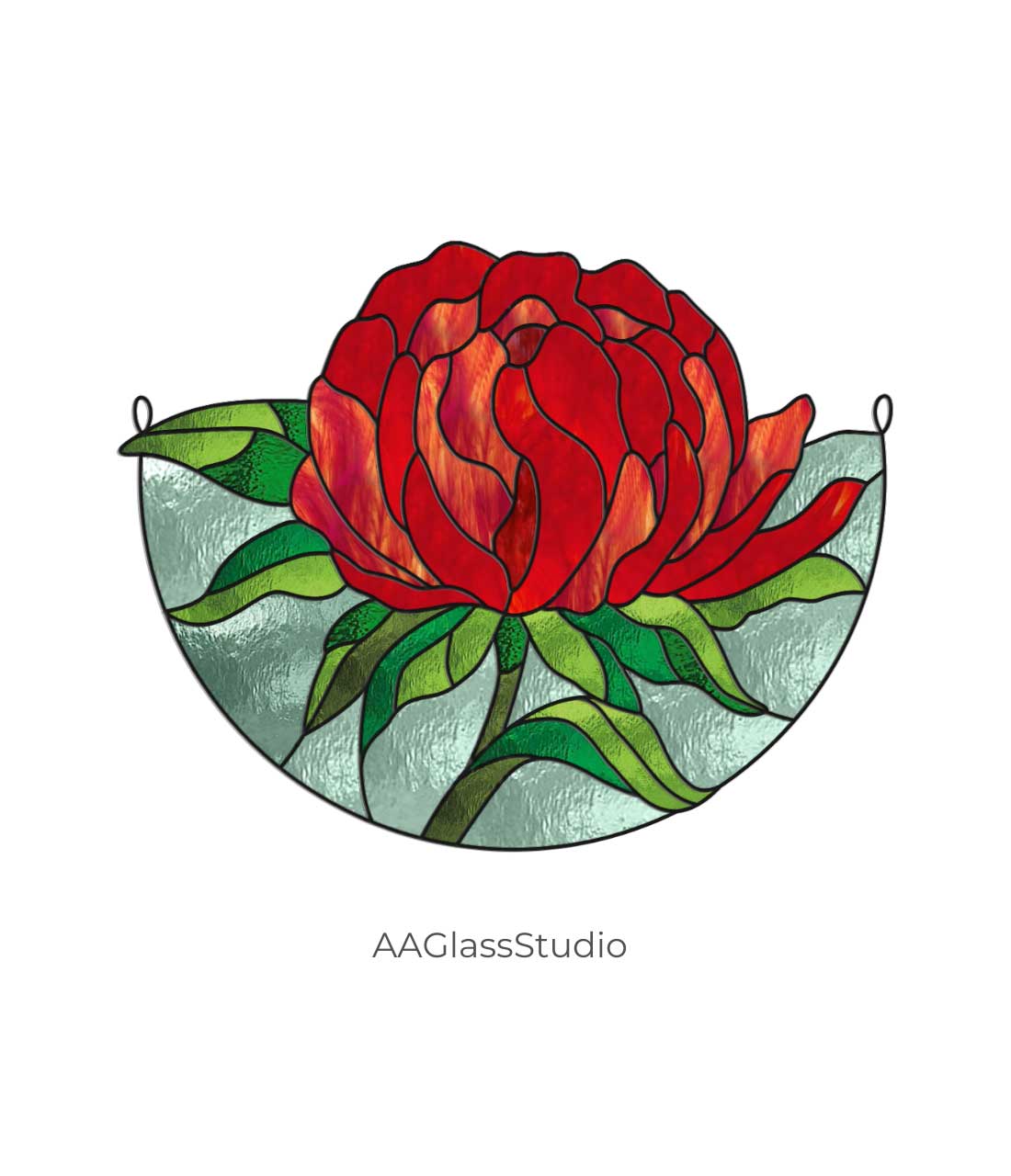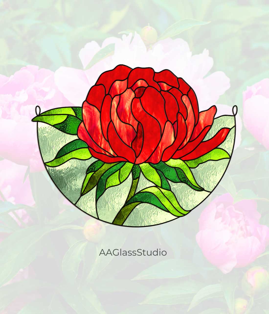 Position our stained glass peony near live peony flowers to create a harmonious blend of art and nature that will captivate all who see it.