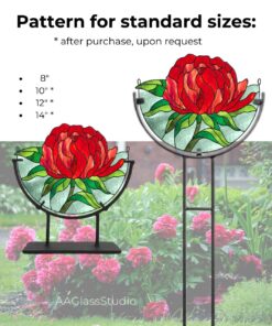 Embrace the beauty of nature with our exclusive Peony Stained Glass Pattern, meticulously crafted to enhance your garden’s aesthetic. This 12-inch semi-circle garden stake is not just a decoration; it’s a statement of elegance.