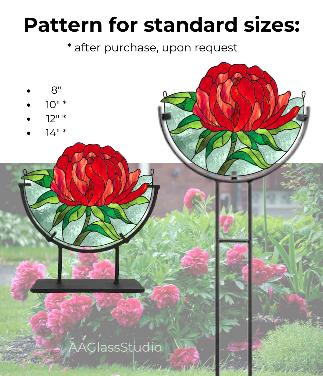 Peony Stained Glass Pattern: Unique 12” Garden Stake