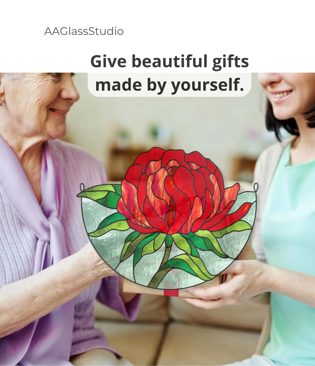 Looking for a thoughtful and beautiful gift? Our Peony Stained Glass Pattern is the perfect choice for the special women in your life, be it your mother, grandmother, or spouse.