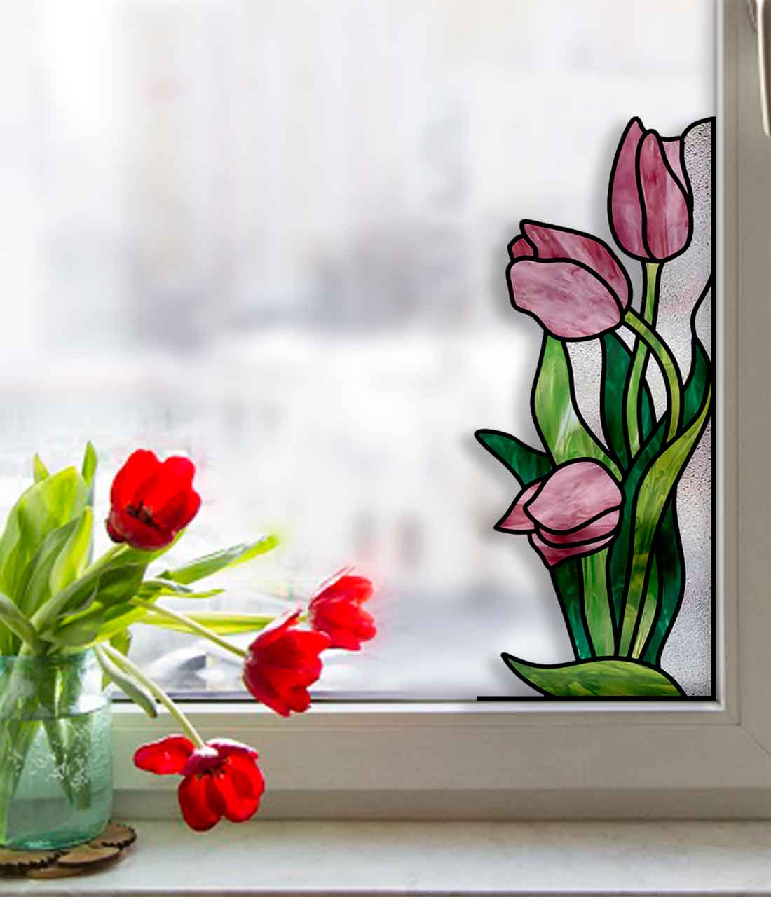 Stained Glass Tulip Pattern, Window Corner
