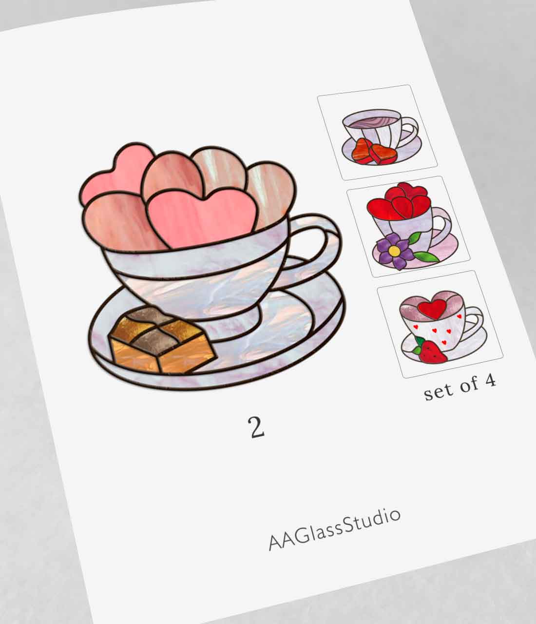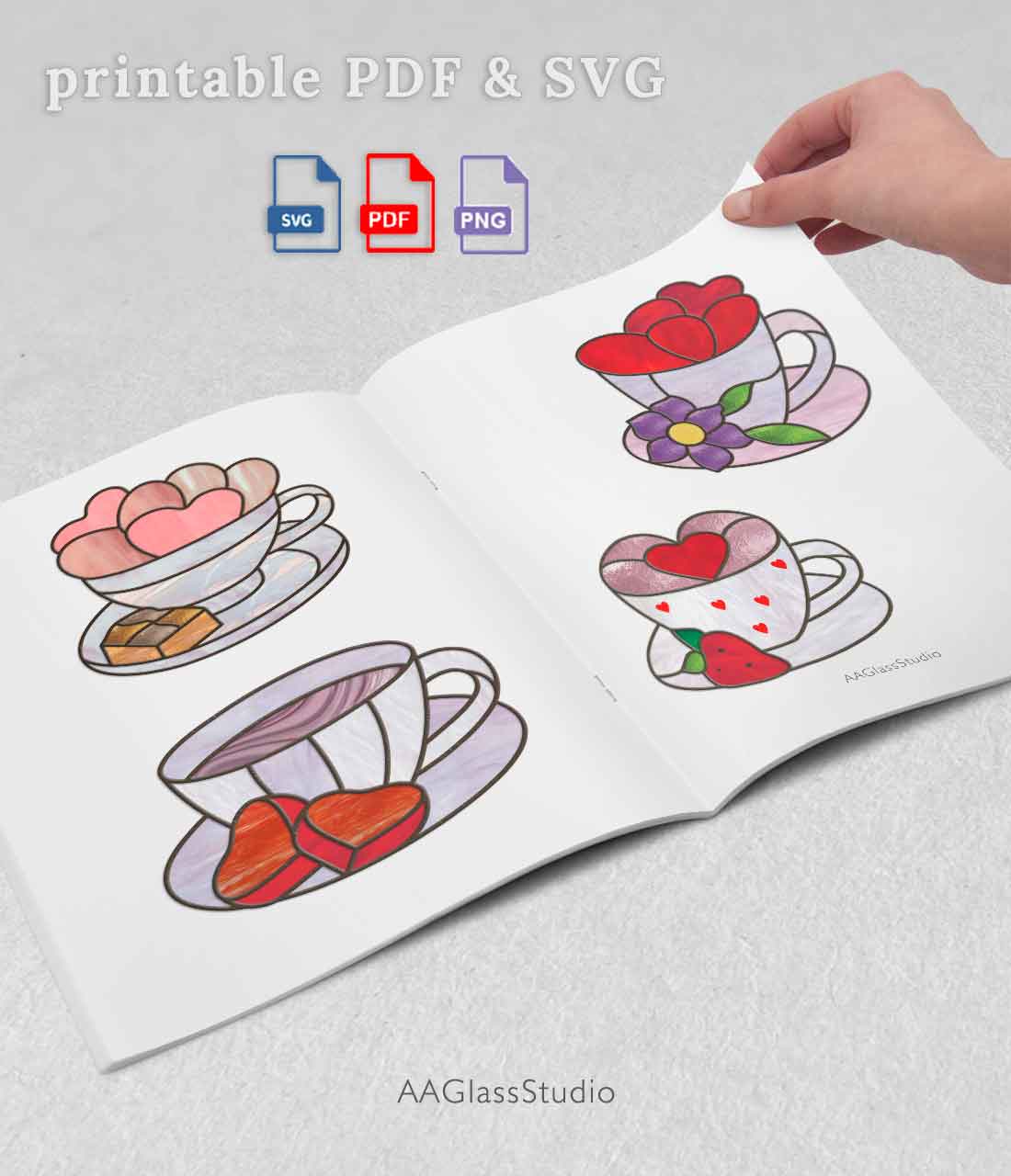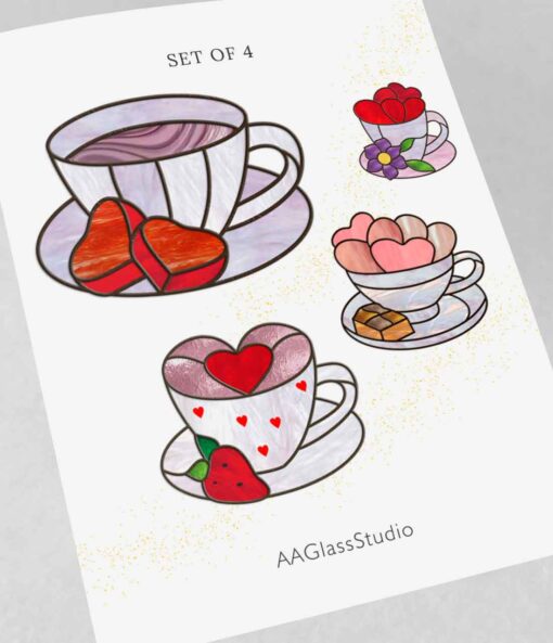 Create your own stunning kitchen stained glass designs featuring adorable coffee cups filled with hearts! This digital pattern set is perfect for creating heartwarming gifts or festive décor, bringing joy to both the crafter and the recipient.