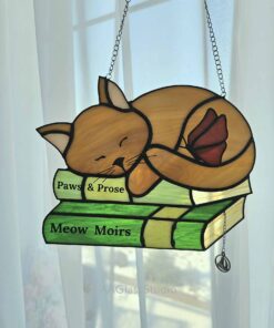 Craving peace? This suncatcher delivers it in spades. The combination of a napping kitty, a stack of books, and a glowing butterfly creates an irresistible vibe of relaxation. Don’t just admire it—adopt it now and let this cat stained glass gem infuse your world with cozy serenity. Your home deserves this burst of warmth and charm!